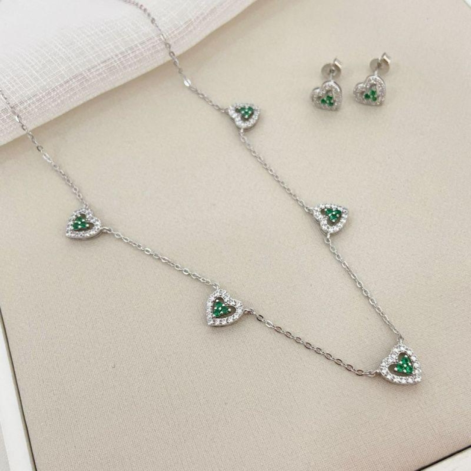 Conjunto prata coração cravejado...